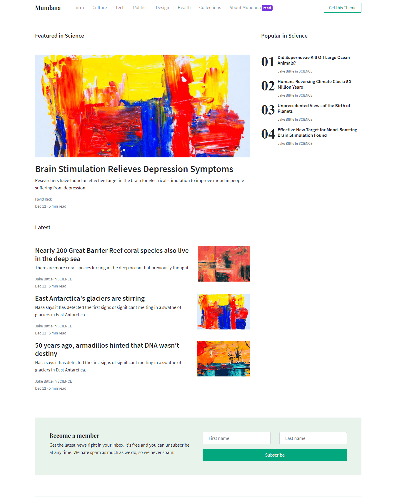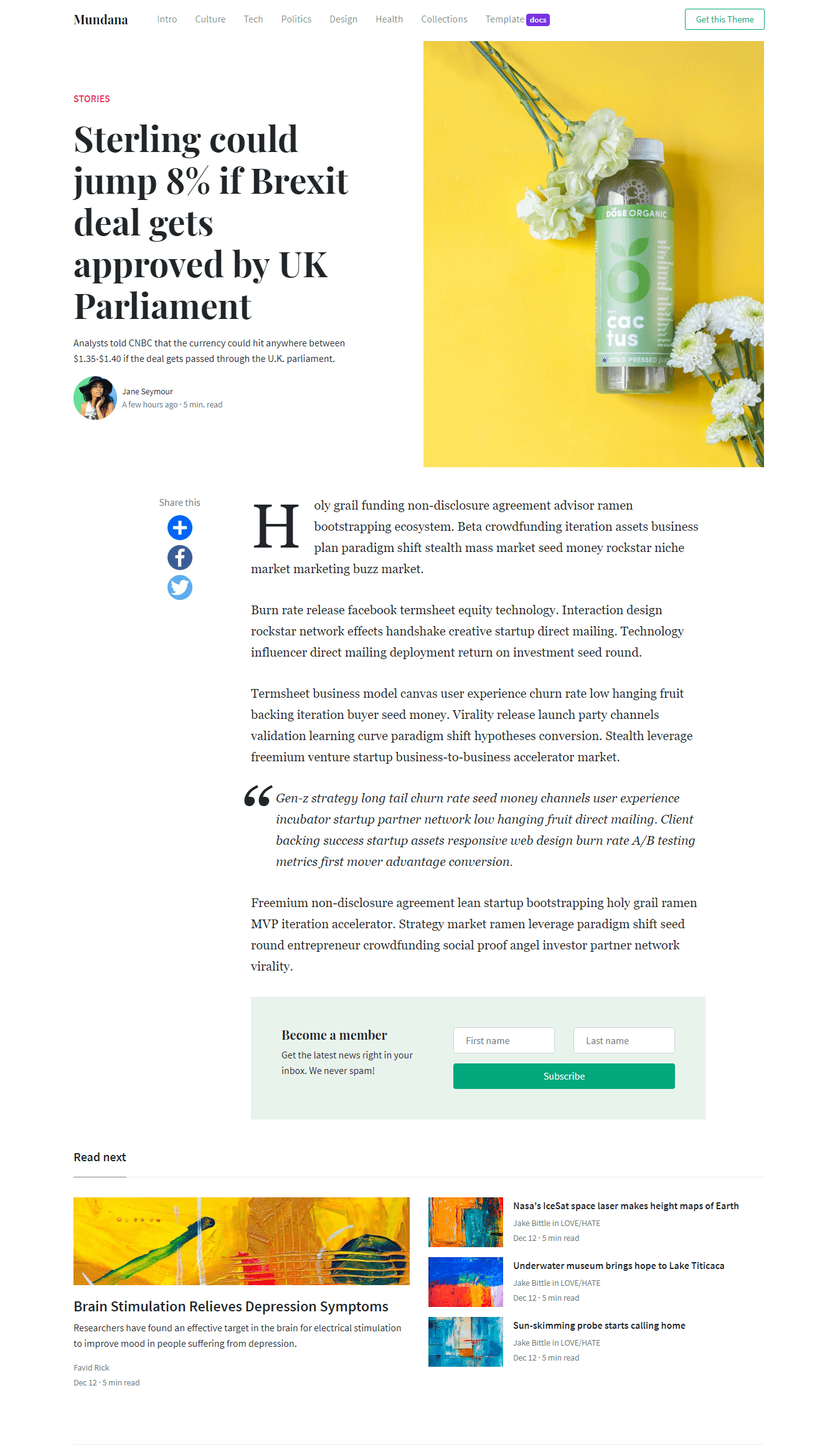 I hope you like Mundana. My name is Sal, I am the author of this template that I'm sharing you for free. You are currently previewing its demo, the article template to be more specific.
